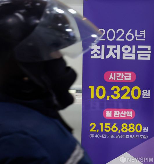 [서울=뉴스핌] 류기찬 기자 = 2일 오후 서울 마포구 서울서부 고용복지플러스센터에 2026년도 최저임금 안내문이 게시되어 있다. 2026년 최저임금은 1만30원 보다 290원(2.9%) 인상된 1만320원이다. 2026.01.02 ryuchan0925@newspim.com