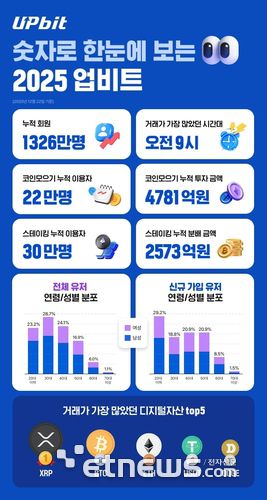 한편 2025년 투자자들이 가장 많이 거래한 종목은 리플(XRP)로 집계됐다. 비트코인(BTC)과 이더리움(ETH)이 뒤를 이었으며, 테더(USDT)와 도지코인(DOGE)도 상위권에 이름을 올렸다.