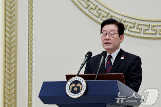 (서울=뉴스1) 이재명 기자 = 이재명 대통령이 2일 청와대 영빈관에서 열린 2026년 신년 인사회에서 신년 인사말을 하고 있다. 2026.1.2/뉴스1