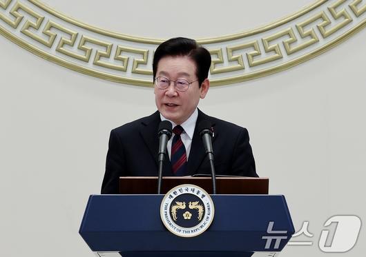 (서울=뉴스1) 이재명 기자 = 이재명 대통령이 2일 청와대 영빈관에서 열린 2026년 신년 인사회에서 신년 인사말을 하고 있다. 2026.1.2/뉴스1