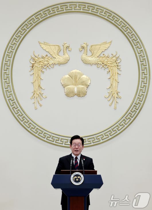 (서울=뉴스1) 이재명 기자 = 이재명 대통령이 2일 청와대 영빈관에서 열린 2026년 신년 인사회에서 신년 인사말을 하고 있다. 2026.1.2/뉴스1