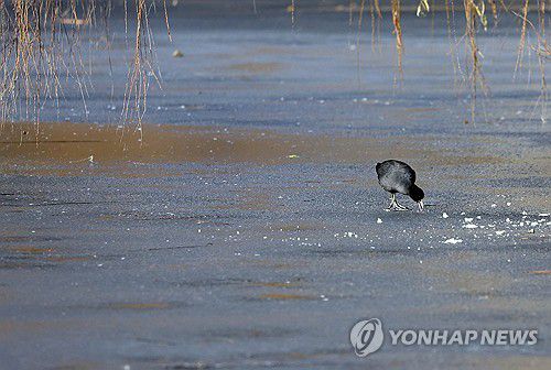 (광주=연합뉴스) 대설특보가 발효됐다가 해제된 2일 오후 광주 북구 용봉동 전남대학교 내 호수에서 물닭이 걸어가고 있다. 2026.1.2 [광주 북구 제공. 재판매 및 DB 금지]