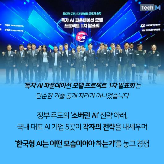 이 프로젝트에 선정된 5개 정예팀들은 세계적으로 파급력 있는 독자 AI 파운데이션 모델을 개발하며 이번 행사를 기점으로 그간 개발한 1차 성과물을 선보였다. 5개 정예팀은 네이버클라우드 업스테이지 에스케이텔레콤(SKT) 엔씨에이아이(NC AI) 엘지경영개발원 AI연구원(LG AI연구원)이다.