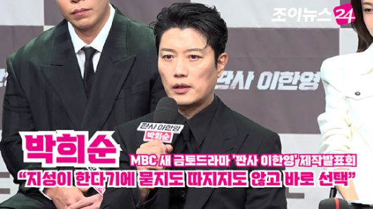 배우 박희순이 2일 오후 서울 마포구 상암동 MBC 골든마우스홀에서 열린 MBC 새 금토드라마 '판사 이한영' 제작발표회에 참석해 소감을 말하고 있다. [영상=문수지 기자]