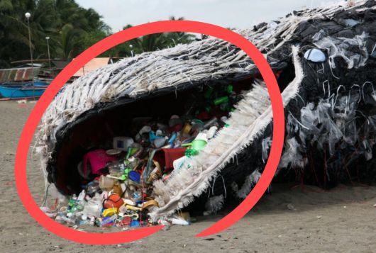 필리핀 마닐라에 설치된 질식한 고래 모형.[그린피스 제공] |