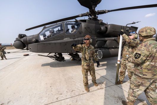 경기 평택 주한미군 기지의 미국 육군 아파치(AH-64E) 공격헬기 부대가 지난달 운용 중단된 것이 주한미군 감축의 신호탄일까, 미 육군 전체 변화의 일부일까.