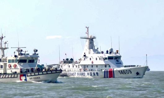 지난 2025년 12월 29일 촬영돼 30일 대만 해안경비대가 공개한 사진. 대만 마쭈 열도 인근 해역에서 대만 해안경비대 함정(왼쪽)이 중국 해안경비대 함정과 근접 항해하고 있다. 이번 훈련은 수년간 중국이 대만 인근에서 실시한 여섯 번째 대규모 군사훈련이다. AFP연합뉴스 |