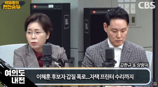 ◇ 박재홍> 그러더니 우리 양향자 최고위원님이 고개를 절레절레 흔드셨는데 왜 그러신 거예요? 그거 작동 안 된다? 이거 듣고 잠깐 쉬었다 가겠습니다.