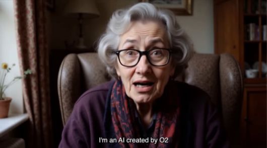 AI 데이지 할머니가 전화를 하는 가상의 모습. "이미 (전화를 한 지) 한 시간이 되간다"고 말하고 있다. /O2 유튜브 캡처 |