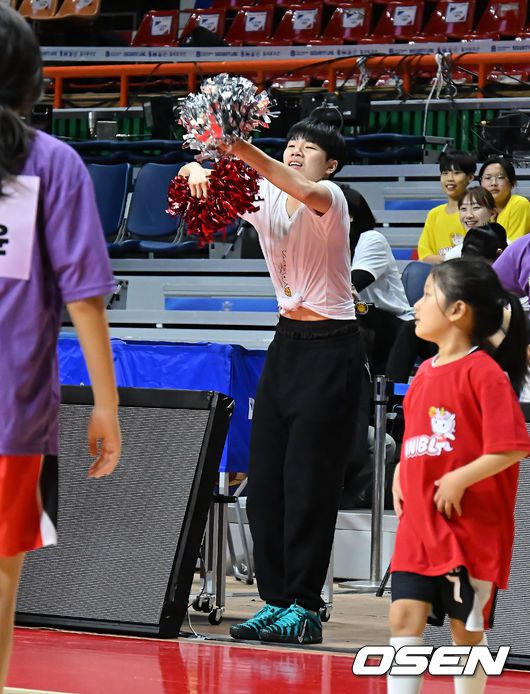 여자농구 올스타 진안(하나은행)이 부산 유소녀 선수들의 W-페스티벌에서 응원을 하고 있다. 2026.01.03 / foto0307@osen.co.kr