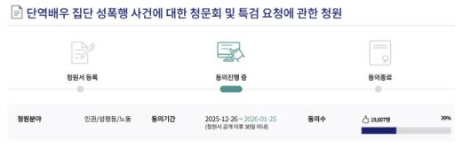 [이데일리 송승현 기자] 과거 단역배우 집단 성폭행 사건과 관련해 진상 규명을 요구하는 국민청원 게시글이 2만명에 육박했다.
