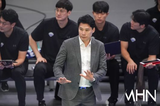 (MHN 수원, 박태성 기자) 3일 수원실내체육관에서 '2025-2026 V-리그 여자부' 현대건설(2위, 13승 6패) 과 GS칼텍스(5위, 8승 10패) 경기가 열렸다. 강성형 감독이 지시를 내리고 있다. <저작권자 Copyright ⓒ MHN / 엠에이치앤 무단전재 및 재배포 금지>