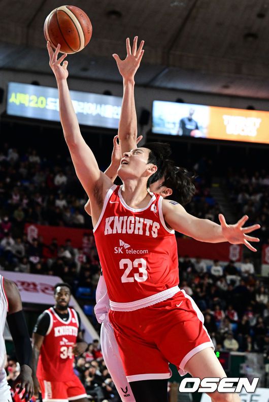 [OSEN=잠실학생체, 조은정 기자] 3일 오후 서울 잠실 학생체육관에서 ‘2025-2026 LG전자 프로농구’ 서울 SK와 안양 정관장의 경기가 열렸다. 홈팀 서울 SK는 15승 12패로 5위, 방문팀 안양 정관은 18승 9패로 2위를 기록 중이다. 3쿼터 SK 김형빈이 바스켓카운트를 따내고 있다. 2026.01.03 /cej@osen.co.kr