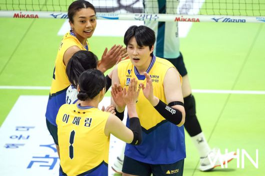 (MHN 수원, 박태성 기자) 3일 수원실내체육관에서 '2025-2026 V-리그 여자부' 현대건설(2위, 13승 6패) 과 GS칼텍스(5위, 8승 10패) 경기가 열렸다. 이예림-김희진이 경기를 펼치고 있다. <저작권자 Copyright ⓒ MHN / 엠에이치앤 무단전재 및 재배포 금지>
