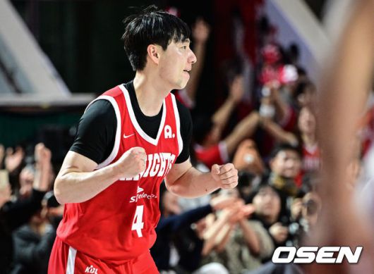 [OSEN=잠실학생체, 조은정 기자] 3일 오후 서울 잠실 학생체육관에서 ‘2025-2026 LG전자 프로농구’ 서울 SK와 안양 정관장의 경기가 열렸다. 홈팀 서울 SK는 15승 12패로 5위, 방문팀 안양 정관은 18승 9패로 2위를 기록 중이다. 4쿼터 SK 김낙현이 3점슛을 성공한 뒤 기뻐하고 있다. 2026.01.03 /cej@osen.co.kr