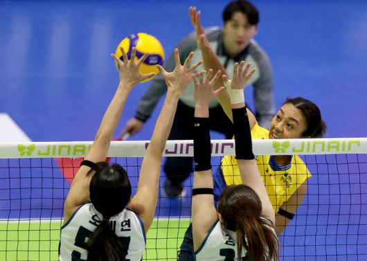 [서울=뉴시스] 3일 수원실내체육관에서 열린 젠에어 2025-2026 V-리그 프로배구대회 현대건설과 GS칼텍스의 경기, 현대건설 자스티스가 공격하고 있다. (사진=현대건설 배구단 제공) 2026.01.03. photo@newsis.com *재판매 및 DB 금지