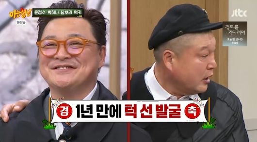 윤정수는 "작년에 105㎏까지 찍었다가 지금은 79㎏까지 감량했다가 조금 다시 올랐다"고 설명했다. 강호동이 "25kg 정도를 뺀 셈"이라고 말하자, 남보라는 "초등학생 한 명이 빠진 거네"라고 덧붙이며 웃음을 더했다