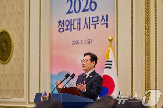 이재명 대통령이 2일 청와대 영빈관에서 열린 시무식에서 발언을 하고 있다. (청와대 제공. 재판매 및 DB 금지) 2026.1.2/뉴스1 ⓒ News1 이재명 기자 |