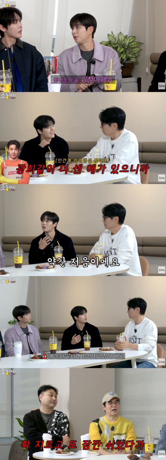 지석진은 "약간 광희보다 정돈이 돼 있다. 광희는 어디로 튈지 모른다"고 말했고, 김동준은 "광희 형은 평소 말할 때 생각보다 되게 저음"이라고 밝혔다.