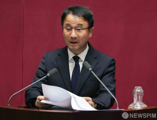 [서울=뉴스핌] 윤창빈 기자 = 한병도 국회 예산결산특별위원장이 2일 서울 여의도 국회에서 열린 본회의에서 2026년도 예산안 수정안에 대한 제안설명을 하고 있다. 2025.12.02 pangbin@newspim.com |