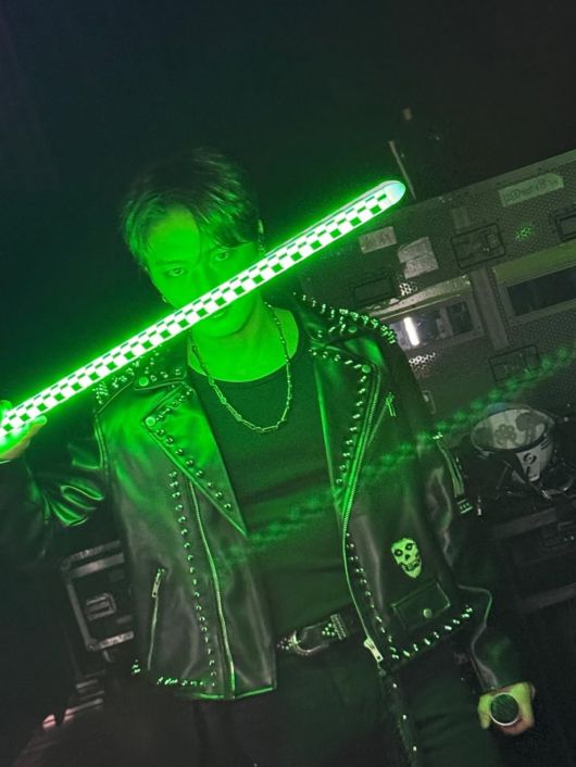 공개된 사진 속 김재중은 블랙 스터드 장식의 가죽 재킷과 체인 액세서리로 거친 카리스마를 완성한 모습이다. 초록빛 조명이 얼굴을 가로지르며 무대 특유의 긴장감과 에너지를 극대화했고 또 다른 컷에서는 스타일링을 준비 중인 순간이 포착돼 날것의 분위기를 더했다.