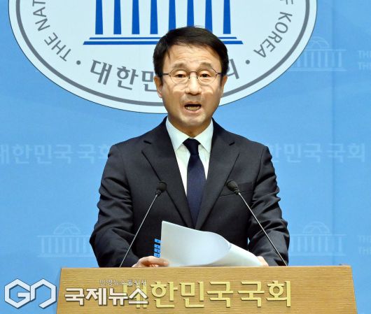 (서울=국제뉴스) 한병도 더불어민주당 의원이 4일 오전 서울 여의도 소통관에서 원내대표 출마 기자회견을 하고 있다./사진=이용우 기자