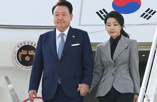 2024년 9월19일(현지시각) 윤석열 전 대통령과 김건희 여사가 체코 프라하 바츨라프 하벨 국제공항에 도착해 전용기인 공군 1호기에서 내리고 있다. 공동취재사진 |