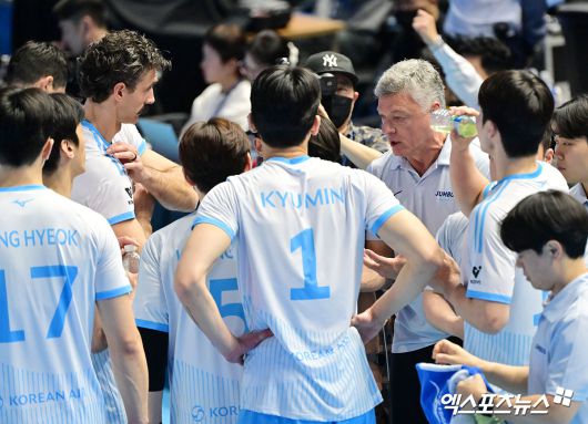 이어 "그만큼 오늘 현대캐피탈이 잘했고, 우리를 괴롭혔다. 어쨌든 모든 건 내 책임이다. 교체와 변화에 대해 믿음을 갖고 있었기 때문"이라며 "통하지 않았기 때문에 숙소로 돌아가서 다음 경기까지 다시 일반 포메이션으로 돌아갔을 때 어떤 게 맞는 퍼즐일지 고민해야 할 것 같다"고 덧붙였다.