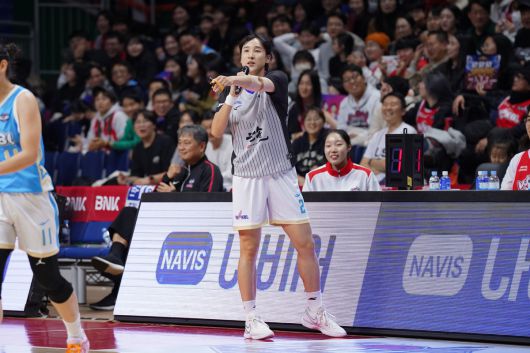 김단비는 감독과 호흡을 뽐냈다. 시작은 박정은 BNK 감독이었다. 박 감독을 코트로 불러세우며 3점슛을 쏘게 유도했다. 박 감독은 BNK 이소희의 견제를 받으면서 휘청였으나, 여러 차례 시도 끝에 3점슛을 성공해 팬들의 박수를 받았다.