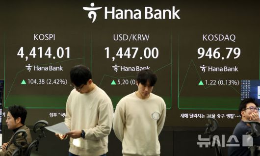 코스닥 지수는 전 거래일(945.57) 보다 2.99포인트(0.32%) 오른 948.56, 서울 외환시장에서 원·달러 환율은 전 거래일 주간거래 종가(1441.8)보다 1.9원 오른 1443.7원에 출발했다. 2026.01.05. 20hwan@newsis.com
