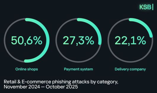 피싱은 오래된 공격 기법이지만, 온라인 구매 환경에서는 여전히 가장 널리 사용되는 위협이다. 2024년 11월부터 2025년 10월까지 카스퍼스키 보안 제품은 온라인 쇼핑몰, 결제 시스템, 배송 서비스를 사칭한 665만1955건의 피싱 링크 접근 시도를 차단했다. 이 중 50.58%는 온라인 쇼핑 이용자를 노린 공격이었으며, 27.3%는 결제 시스템, 22.12%는 배송 서비스 이용자를 겨냥했다.