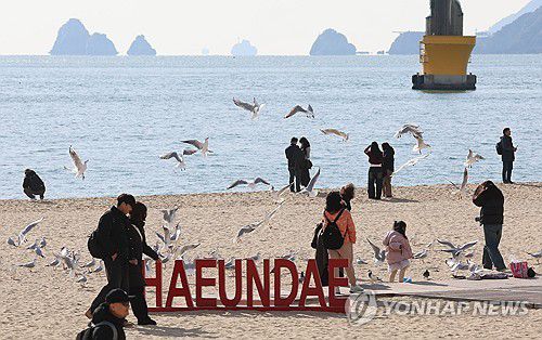 (부산=연합뉴스) 강선배 기자 = 추위가 물러가고 포근한 날씨를 보인 5일 부산 해운대구 해운대해수욕장을 찾은 나들이객들이 갈매기의 군무를 보며 한가로운 시간을 보내고 있다. 2026.1.5