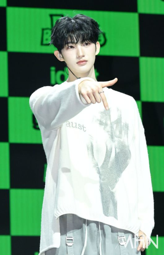 이날 쇼케이스에 참석한 아이덴티티 김희주가 포즈를 취하고 있다.