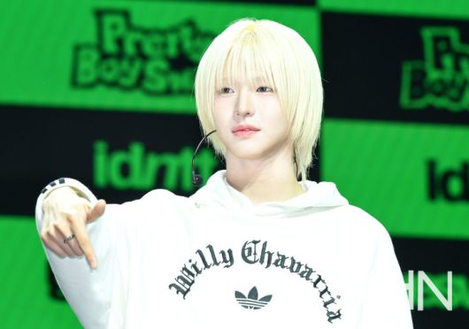 이날 쇼케이스에 참석한 아이덴티티 이청명이 포즈를 취하고 있다.