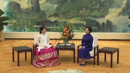 지난해 11월 경주 APEC 정상회의를 계기로 이뤄진 시 주석의 국빈 방한엔 펑 여사가 동행하지 않아, 두 여사가 만난 건 이번이 처음입니다.
