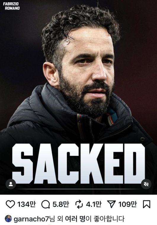가르나초가 첼시 유니폼을 입은 지 어느덧 4개월이 지났지만, 두 사람 사이의 앙금은 여전히 남아 있는 모습이다. 과거 에릭 텐 하흐 감독 시절부터 아모림 감독을 비판하는 게시물에 '좋아요'를 눌러왔던 그는, 이번에는 아모림 감독의 경질 소식에도 같은 반응을 보이며 다시 한번 논란을 키웠다.