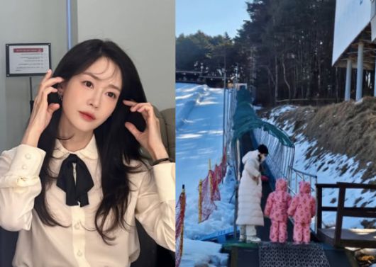 공개된 사진 속 성유리는 쌍둥이 자매와 함께 한 썰매장을 방문한 모습이다.