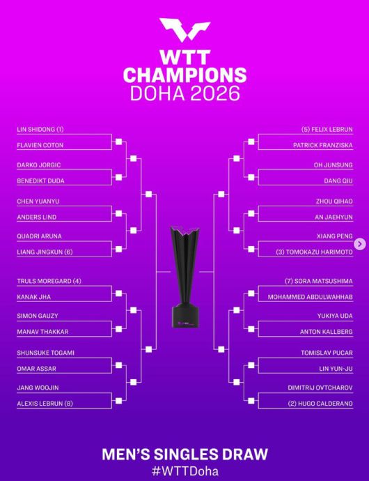 월드테이블테니스(WTT)는 5일(한국시간) 공식 채널을 통해 WTT 챔피언스 도하 2026 대진표를 발표했다.