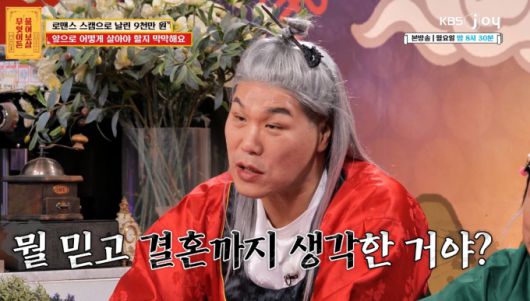 홍콩에서 한국 여행을 준비 중이라는 미모의 여성으로부터 SNS(소셜미디어)를 통해 메시지가 왔다는 사연자는 "사진만 보고 대화하다가 결혼까지 생각했다"며 순진한 면모를 보였다.