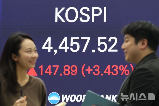 6일 한국거래소에 따르면 전날 코스피 지수는 전 거래일 대비 147.89포인트(3.43%) 오른 4457.52포인트로 마감하며, 사상 최고치를 기록했다. 올해 첫 거래일인 지난 2일 95.46포인트(2.27%) 상승해 4300선을 돌파한 데 이어, 하루 만에 4400선도 넘어선 것이다.