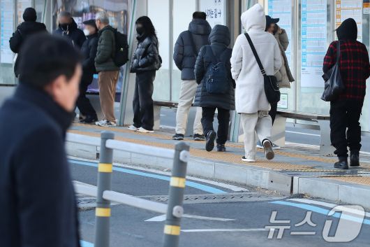잔뜩 움츠린 채 버스 기다리는 시민들./뉴스1 |