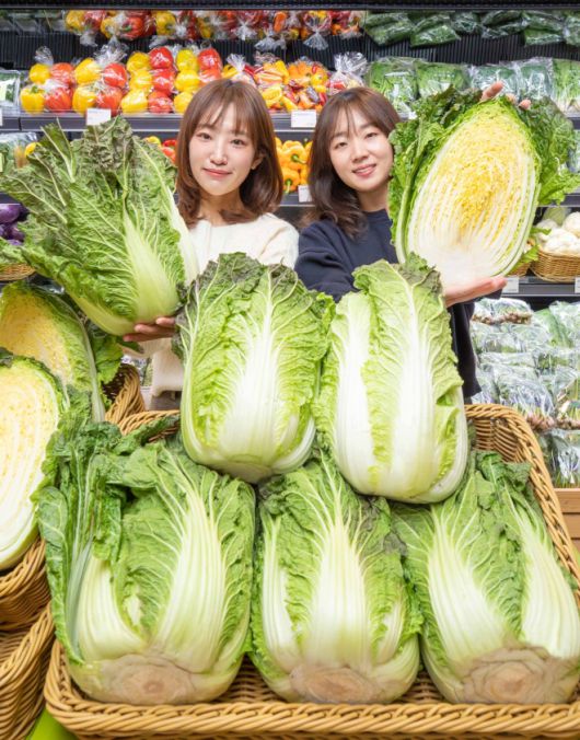 현대백화점은 오는 31일까지 배추와 갓을 교잡해 만든 신품종 ‘아삭갓배추’(한 포기당 4000원)를 압구정본점, 무역센터점, 판교점 등 전국 10개 점포 식품관에서 판매한다고 5일 밝혔다. 사진은 직원들이 아삭갓배추를 소개하는 모습.