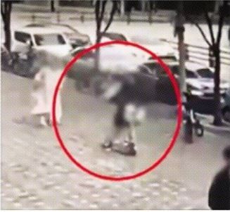 지난해 10월 18일 인천 연수구 송도동의 한 인도에서 30대 여성 A씨가 중학생 B양 등 2명이 타던 전동킥보드(붉은 원)에 치였다. MBC 보도화면 캡처 |