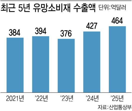 특히 이들 5대 유망소비재 수출은 코로나 대유행 직후인 지난 2021년 384억달러에 그쳤으나 지난해 464억달러로 4년 새 20.8% 증가했다. 같은 기간 전체 수출액이 10.1% 늘었다는 걸 고려하면 성장세가 두드러진다. 세계 한류 열풍을 타고 K푸드·뷰티 선호가 확대한 영향이다.