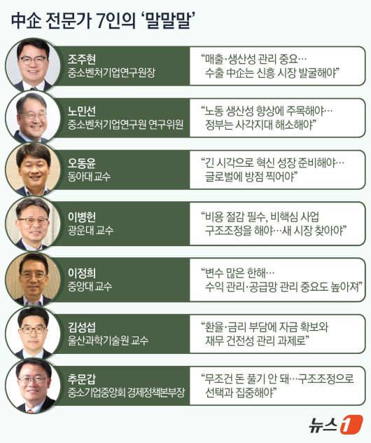 <뉴스1>은 중소기업계 전문가 7인에게 저성장 국면이 장기화하는 환경에서 중소기업이 생존력을 유지하기 위해 필요한 조건을 물었다.