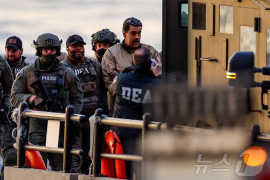 니콜라스 마두로 베네수엘라 대통령이 5일(현지시간) 미국 뉴욕 맨해튼 법정 출두를 위해 미 마약단속국(DEA)과 경찰 요원에 둘러싸인 채 호송 차량에 탑승하고 있다. 2026.01.05. ⓒ 로이터=뉴스1 ⓒ News1 류정민 특파원 |