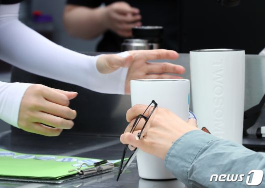서울 중구 서울광장에서 열린 올해 첫 텀블러데이 행사에 텀블러(개인컵)를 가져온 시민들이 음료를 받고 있다. 2023.5.10/뉴스1 ⓒ News1 박정호 기자 |