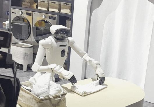 5일(현지시간) 미국 라스베이거스 컨벤션 센터(LVCC) LG전자 사전 부스투어에서 홈로봇 ‘LG 클로이드’가 수건을 접고 있다.(영상=공지유 기자) |