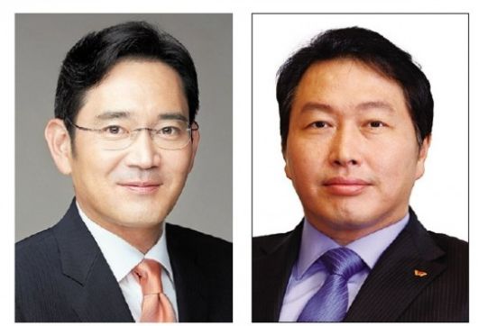 이재용 삼성전자 회장(왼쪽)과 최태원 SK 회장 |