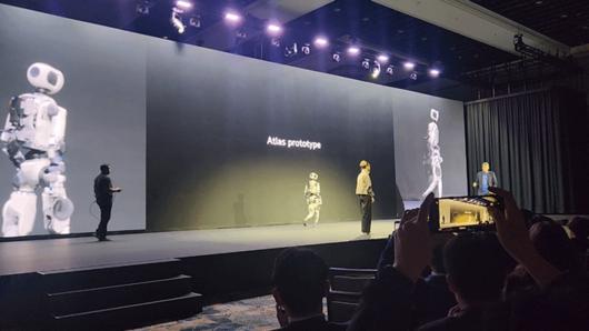 현대자동차그룹이 5일(현지시각) 미국 라스베이거스 만달레이 베이 컨벤션 센터에서 인간과 로봇이 협력하는 로보틱스 생태계 구축과 AI(인공지능) 고도화를 통해 인류의 진보를 선도하는 'AI 로보틱스' 전략을 공개했다. 이날 보스턴다이나믹스의 로봇 ‘스팟’이 군무를 선보였고, 차세대 휴머노이드 로봇 ‘아틀라스’도 공개됐다.